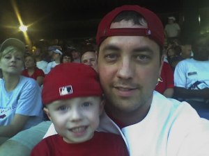 Joshua just absorbed all the sights and sounds. He’s been to several ball games in the past, but this one seemed different. He was more lucid, more aware of his surroundings. The look on his face when we walked in and saw the field was priceless. We arrived in time to catch the Cardinals take batting practice. We found a spot along the left field wall and watched as Albert Pujols put on an absolute clinic. As the Cards wrapped up their BP session, backup catcher Gary Bennett sauntered over and picked up a stray ball near the warning track. After surveying the throng of fans squealing and screaming for the up-for-grabs souvenir — you’d have thought he was giving away advanced copies of the new Harry Potter book, not a $3 baseball — Bennett spotted Joshua with his little glove hoisted in the air. He walked near us and underhanded the ball our way. After catching the ball, I told Joshua to tell Mr. Bennett thank you. But he was too awestruck to speak. I thanked Bennett and we headed to our seats with a sweet leather-and-twine reminder of our day at the park.