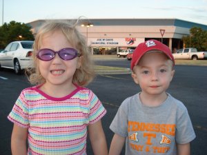 This week our hometown Huntsville Stars have been hosting their Southern League foe, the Carolina Mudcats. The Mudcats closer, Chris Mobley, was in my youth group when I was a youth minister in Kingsport, Tennessee. Chris was kind enough to arrange for some tickets for us, so on Tuesday night, Abby Kate and Joshua and I made our way to Joe Davis Stadium for the game. The kids were so excited, especially Abby Kate. Since Joshua had the chance to go to both a Cards game and a Titans game recently, Abby Kate was excited to be “one of the boys” for a night! Here are some pics of our night at the ballpark.