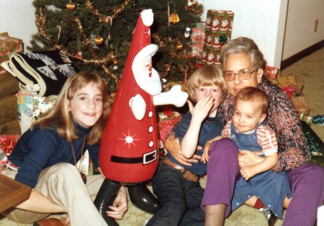 Grandmother Bybee with her brood: her granddaughter Tara (left); grandsons Chris (middle) and Jason (right)