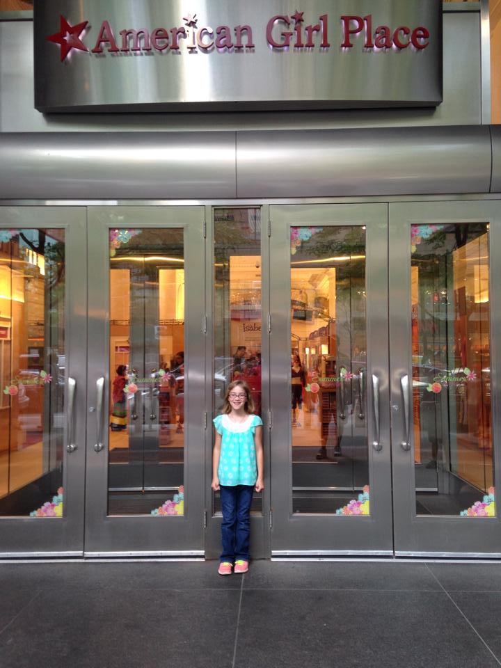 After milling around the park, we decided to make our way to the American Girl Doll store. Abby Kate had some early birthday money from her grandmother and great-grandmother, so she decided to spend it on a few things at the store. She was tempted to buy something at the American Girl store at the Mall of America in Minneapolis, but after hearing that the Chicago store was even bigger, she decided to hold off and do her shopping here instead. She had so much fun shopping and I had fun watching her. She was such a trooper to endure 4 ball games on her family vacation; the least we could do was spare a half hour for her to walk through and see the American Girl stuff.