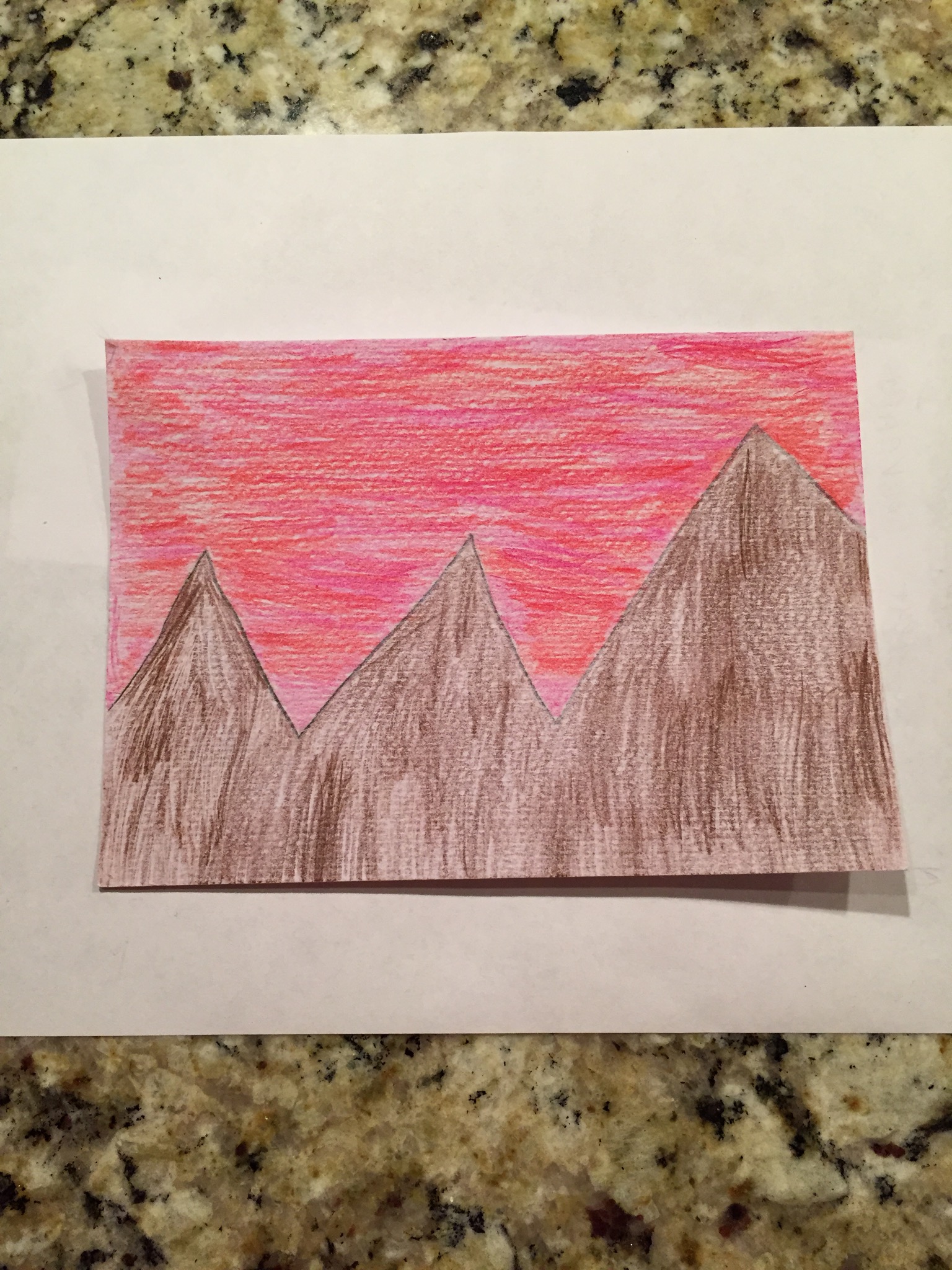 I think this picture that Jackson drew is incredible! I love the color of the sky: purple and orange. And the mountains that go on and on. A masterpiece!