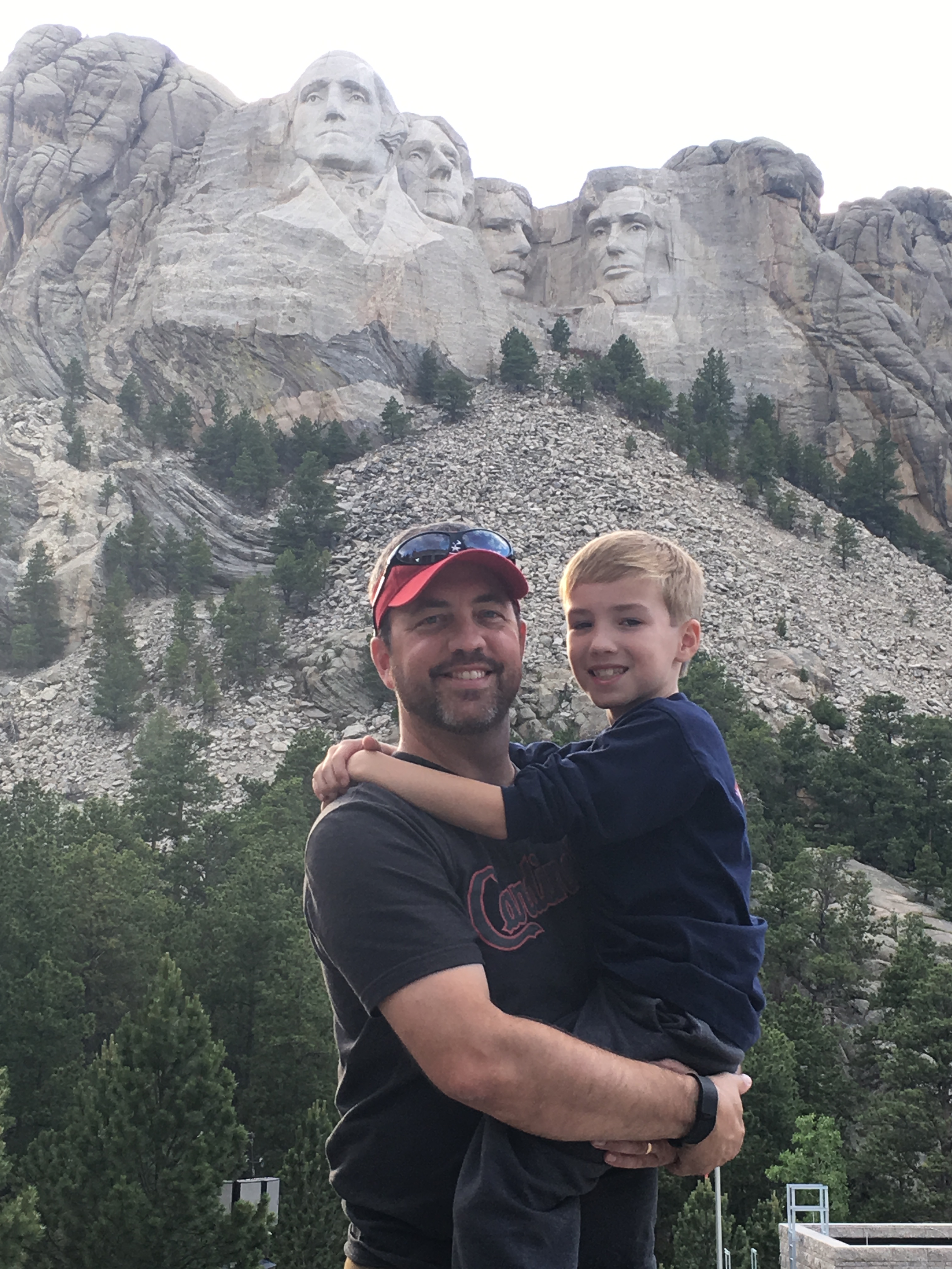 The little monkey climbed in my arms for a quick pic at Mt. Rushmore