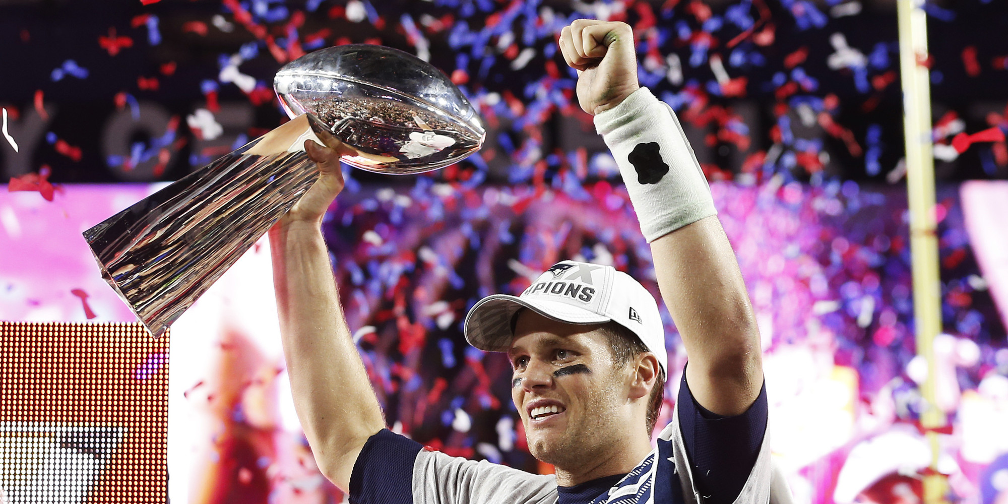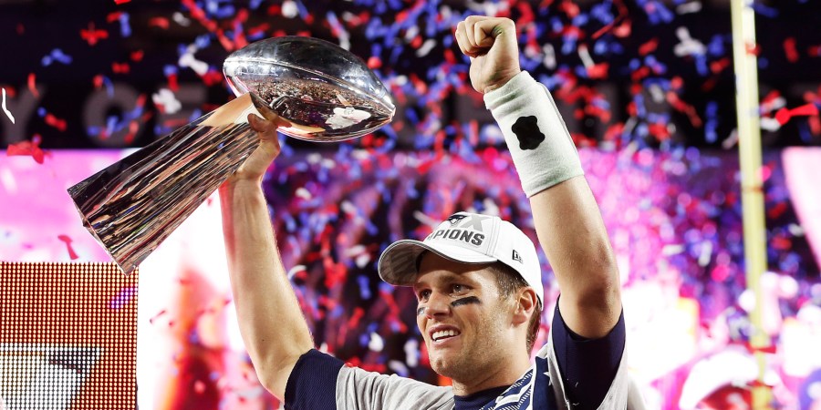 GLENDALE, AZ – FEBRUARY 01: Tom Brady #12 of the New England Patriots celebrates with the Vince Lombardi Trophy after defeating the Seattle Seahawks 28-24 to win Super Bowl XLIX at University of Phoenix Stadium on February 1, 2015 in Glendale, Arizona. (Photo by Christian Petersen/Getty Images)