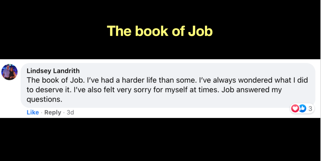 I’m blown away by what my friend Lindsey wrote. I wish you knew her story; and she’s right — her life has been filled with difficulties. But through the book of Job, God has been able to speak tenderly to her heart.