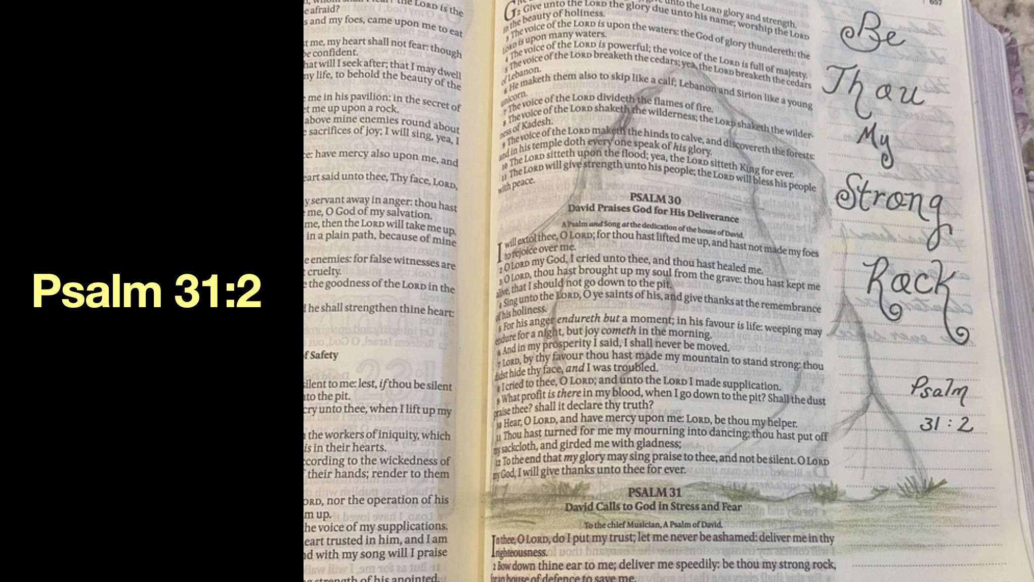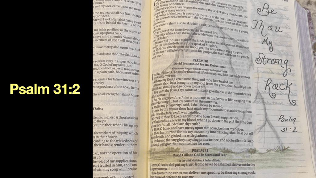 My friend Heather pointed to Psalm 31, especially verse 2, which simply says, Be thou my strong rock. She says this verse has guided her through some really difficult days, but God has proven to be the strong rock for her that David speaks of in this Psalm.