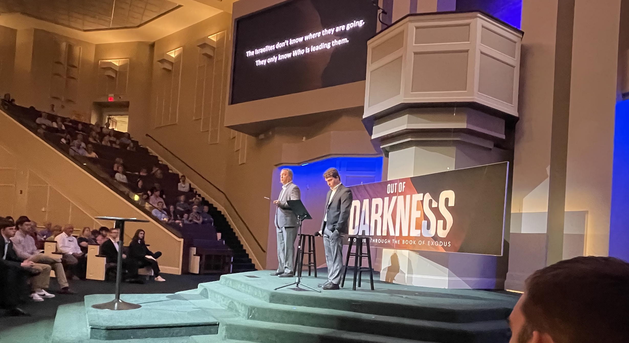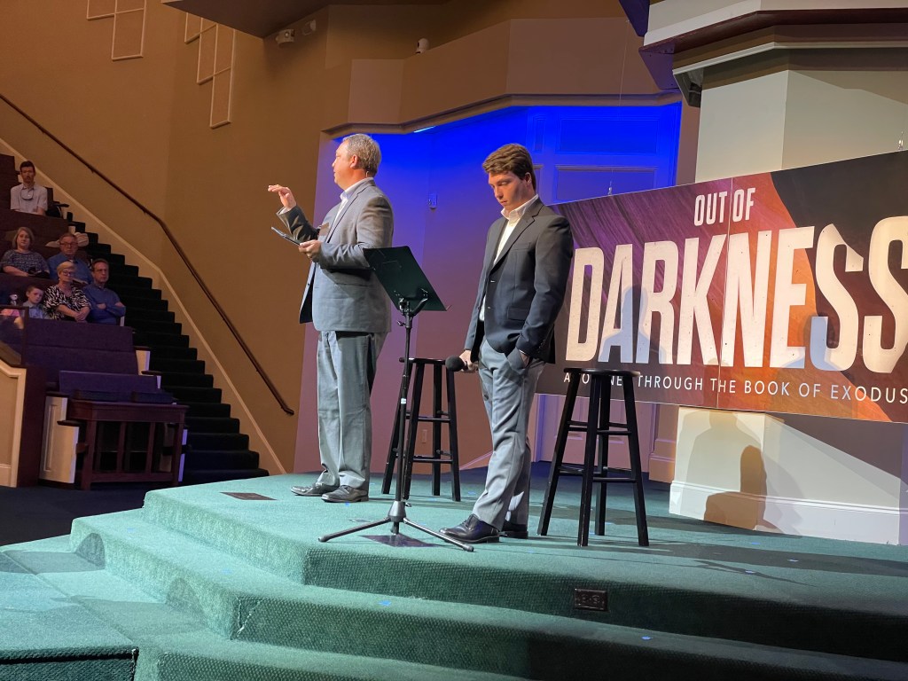 Each year, our church honors our high school graduates with “Senior Sunday.” The young men in each year’s graduating class help lead our Sunday morning worship service. This year, our youth ministry team asked me if I would be interested in co-preaching the morning message with Joshua — and I was thrilled. We worked on a message for my current series on the book of Exodus entitled Out of Darkness. Joshua developed all of his own material and delivered it with confidence, grace, and passion. It was a joy to work on this with him, but even more joyful to sit back and watch him share his heart with our church family. He developed ALL of his own content, too; I just helped with a few edits. In our 25-minute message, I’m guessing he spoke for 17-18 minutes or so. I didn’t even have to do much of the heavy lifting!