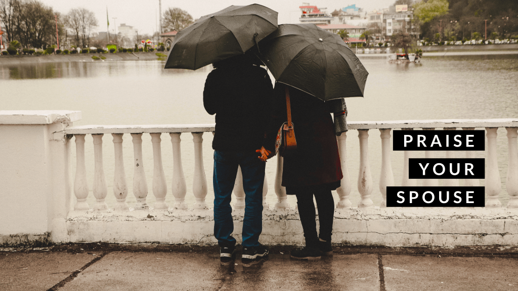 For those of you who are married, one of the best things you can do for your marriage is to find a way to praise your spouse in front of other people. Look for opportunities to build him / her up in front of someone else. You get bonus points if you do this in front of his / her family. This will encourage your husband or wife in a special way.